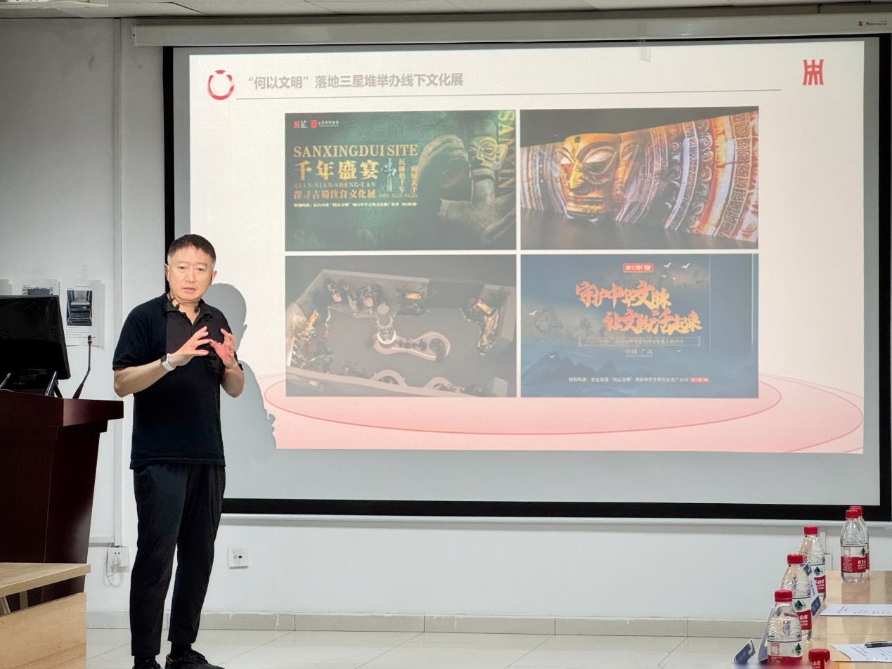 会上,冯宇总经理介绍了“央博”数字平台建设及业务发展情况。作为总台主动参与国家文化数字化战略、积极开展“工程化”布局的创新实践,“央博”数字平台致力于web3.0,通过思想+艺术+技术,创建全新宇宙空间、打造文化云社交场。他指出,“央博”数字平台将构筑新时代数字文化传播高地视为己任,规划出九条明确的业务线,包括EMP展馆园、品牌营销、教育研学、文创、文化活动、AIGC文旅票务、电商央博店、沉浸式数字展、技术服务输出。其中,“何以文明——中华文明探源工程成果数字艺术大展”运用数字技术构建移动化、交互式的时空框架,对10个中华文明探源工程重点考古遗址进行沉浸式复现。 未来要以区块链、元宇宙、人工智能等新一代信息技术为支撑,通过“四端并举”,即APP/Web、元宇宙空间、栏目与展厅/空间,实现全方位、多渠道的信息传播和互动体验,打造集数字化展示、沉浸式体验与互动交流等于一体的智能化平台。他表示,期待利用大模型和数字人技术能力,实现数字永生与自主交流,希望能够与西安交大91传媒