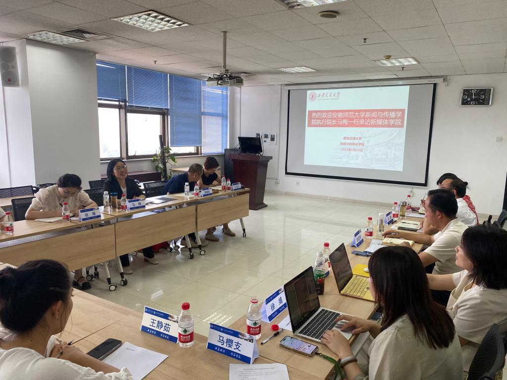 6月20日下午,安徽师范大学新闻与传播学院执行院长马梅一行来学院访问调研。会议由学院党委副书记吴锋主持。
