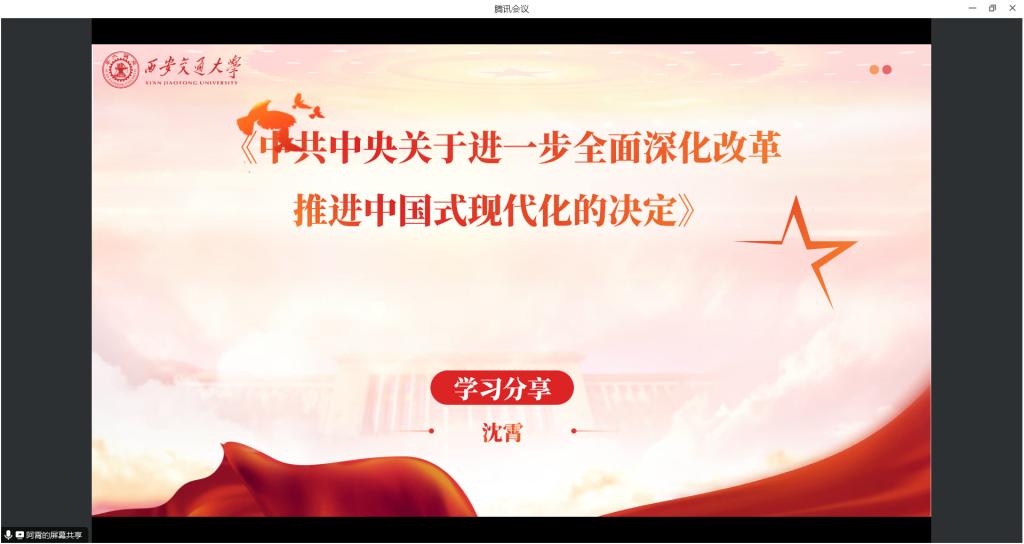 8月23日下午,新媒体系在线组织开展第五次“学习强科”业务研讨活动,本次活动由系党支部书记牛耀红主持。沈霄副教授领学了《中共中央关于进一步全面深化改革、推进中国式现代化的决定》(以下简称《决定》)的相关内容,刘焕副教授就《决定》中关于“深化文化体制机制改革”的部分进行了分享交流。