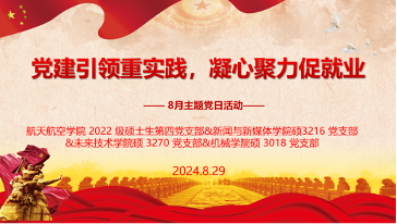 在新时代的征程上,习近平总书记强调了“知行合一”的重要性,倡导青年学子在实践中学习真知、悟真谛,以增强实践能力。2023年政府工作报告也特别指出,要“把促进青年特别是高校毕业生就业工作摆在更加突出的位置”。为更好促进支部成员参与并开展社会实践,把握实习就业机会,在实践中锤炼本领,与社会和市场接轨,8月29日,航天航空学院、91传媒