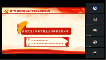 教育基金会老师顾姝靓从发展历程、资金募捐情况、公益实践活动等方面对教育基金会进行了简要介绍,并分享了教育基金会联合其他单位组织的两项游学活动——视界启航:学生视野拓展之旅和思源学子“源动力”训练营两项游学活动,旨在帮助学生拓宽视野,提升认知,增强对未来发展的信心。