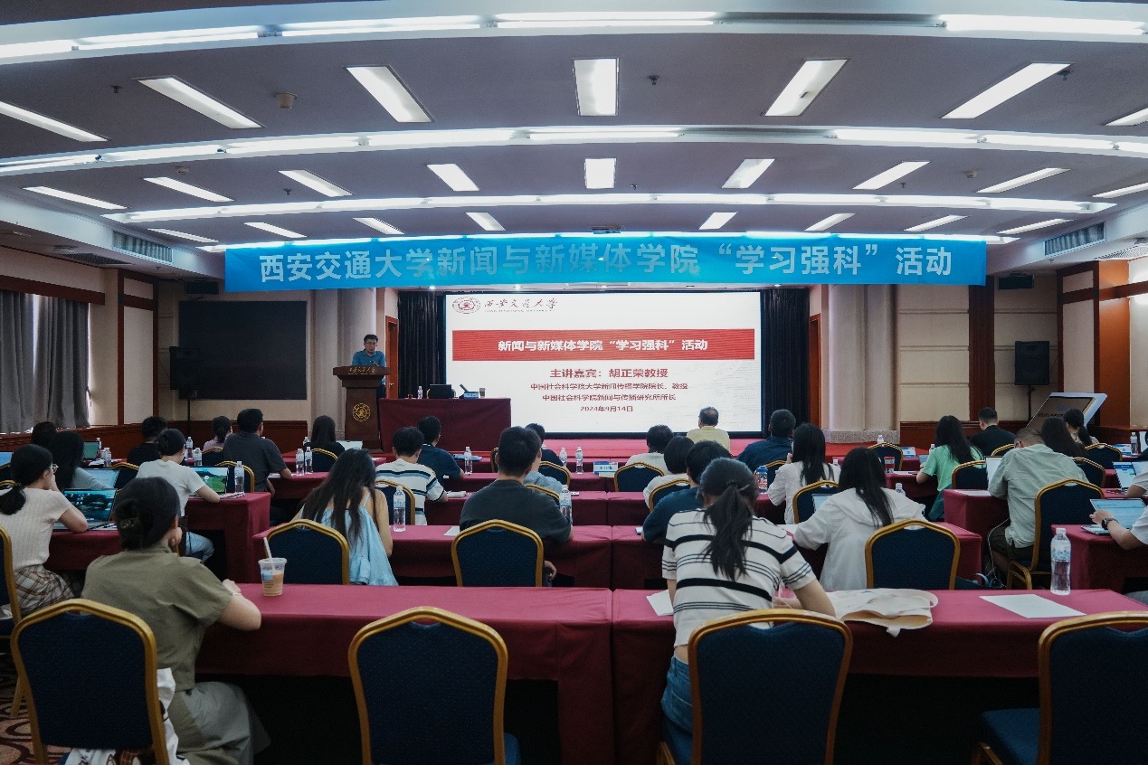 各系所已陆续举办20余场,此次活动具有承上启下的重要意义,对提升“学习强科”活动的水准与品质具有标杆示范作用。他强调,“学习强科”的根本任务在于从本体论、价值论和方法论三个层面重点回答新时代中国特色社会主义新闻传播教育“是什么”“为什么”和“怎么办”的问题,坚持扎根中国大地办教育、深化教育改革创新与教育科技人才一体推进,坚持学科自信、发展智能传播专业新方向,首要就是围绕习近平总书记关于人工智能相关重要指示批示精神,党的二十大报告、推进中国式现代化的决定等重要政策文件进行系统领学和解读,由此明确新闻传播学科发展的战略定位、发展思路、根本动力、基本途径、重要抓手。他再次呼吁,学院师生应以“学习强科”系列活动为支点,坚持聚焦国家重大战略需求,以高水平发展智能传播专业新方向作为学科生命线,以服务数字传媒新业态、新消费、新场景和新模式作为建设中国新闻传播学科自主知识体系的重要任务,“高起点、高标准、高质量”培养国家战略人才和急需紧缺人才,扎实提升学院新闻传播学科竞争力、品牌影响力。