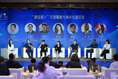 陕西师范大学历史文化学院教授、博士生导师于赓哲,大相文博联合创始人陈加晋,中国移动咪咕公司咕咕工作室精品短剧负责人谢佳冰,中国内地影视演员、西安话剧院演员、国家一级演员谭希和,刚果(布)文化传播代表英勇,阅文集团海外业务部总监、海外短剧与有声业务负责人李梦姣,围绕“微短剧+”文旅赋能与海外传播展开交流对谈。