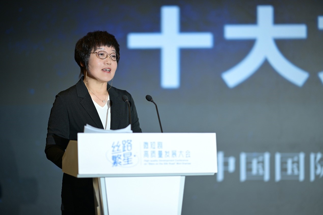 在“丝路繁星”微短剧高质量发展大会上,陕西省人民政府副省长徐明非、中国广播电视社会组织联合会副会长童刚、国家广播电视总局网络视听节目管理司副司长杨铮为大会致辞。