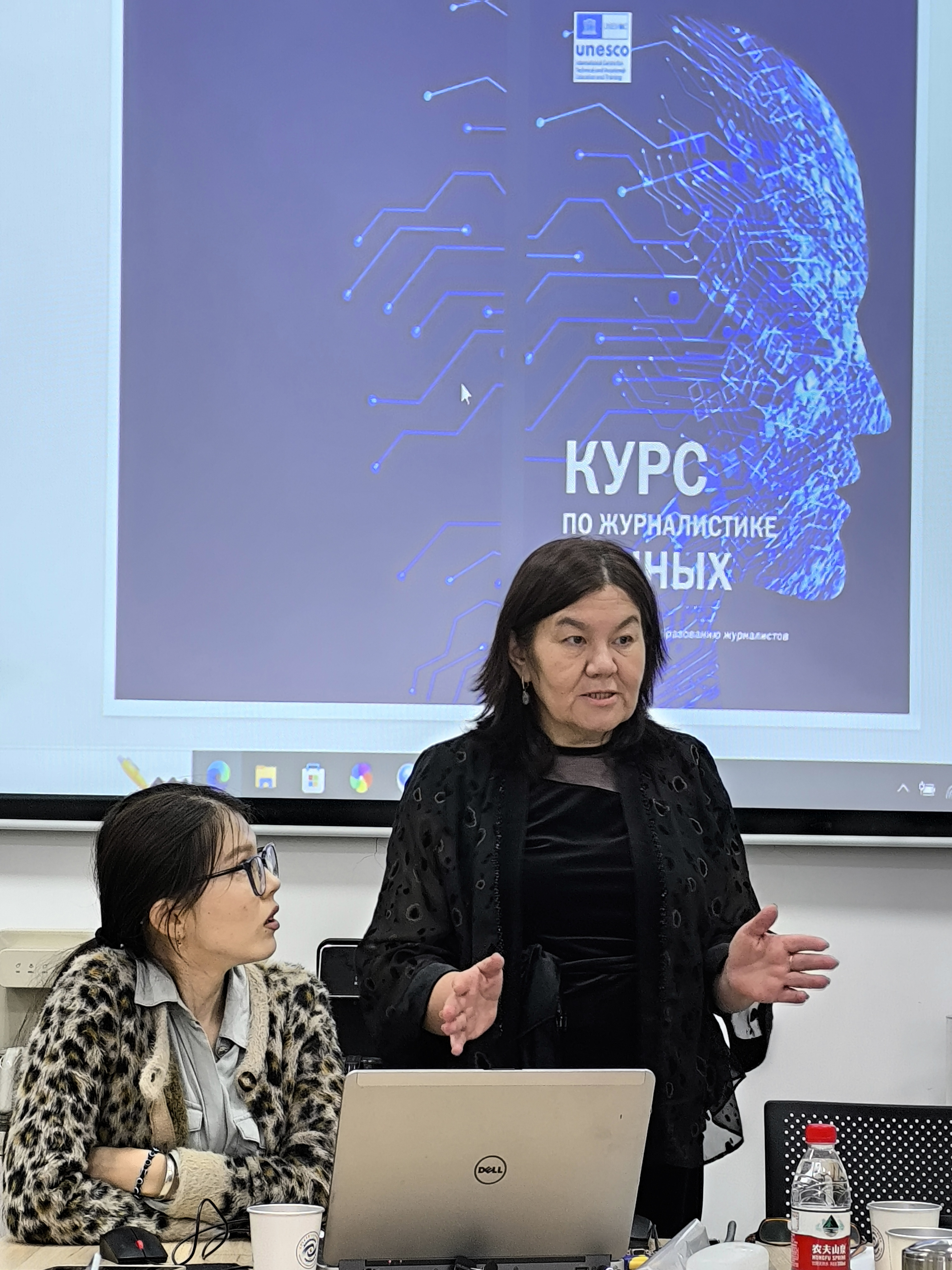 随后,古力米拉·苏尔丹巴耶娃教授以《数据新闻教程》全书的第一章为蓝本,深入讲述了数据新闻学在吉尔吉斯斯坦、哈萨克斯坦、塔吉克斯坦和乌兹别克斯坦等中亚国家的最新实践。她通过一系列生动的数据新闻应用案例,详细阐述了数据新闻在中亚国家的应用现状、面临的挑战以及未来的发展趋势。如吉尔吉斯斯坦在线新闻网站Kloop.kg与azattyk.org运用数据新闻合作发表《数据4.0:关于吉尔吉斯斯坦的物价及其对贫困的影响》,哈萨克斯坦媒体在新冠疫情期间利用数据新闻创建疫苗接种地图,联合国教科文组织驻乌兹别克斯坦代表处首次发起数据新闻学培训等。此外,她强调了高校的数据新闻教育对于培养新一代新闻工作者的重要性。为推动中亚地区数据新闻学的动态发展,高校课程应大力帮助学生掌握数据分析、可视化和报道技能,以适应数字化时代的需求。