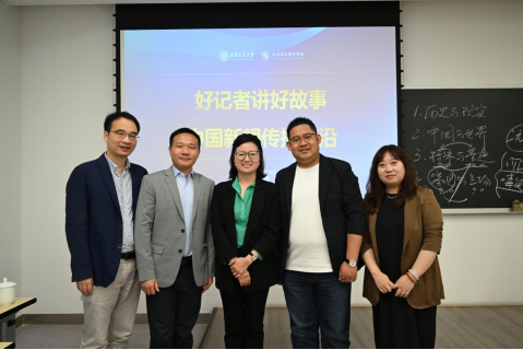 5月18日上午,“好记者讲好故事——中国新闻传播前沿”系列课程第五讲在中国西部创新港成功举办,本次课程特邀中国国际电视台(CGTN)新媒体编辑部张施磊主任与中国传媒大学广播电视学系涂凌波主任联袂开讲,围绕"实践中的国际传播变革"展开深度对话,分享前沿观察与理论经验。课程由徐婧副教授主持,新媒体系系主任陈强教授、新闻系刘丹助理教授及70余名选课学生共同参与。