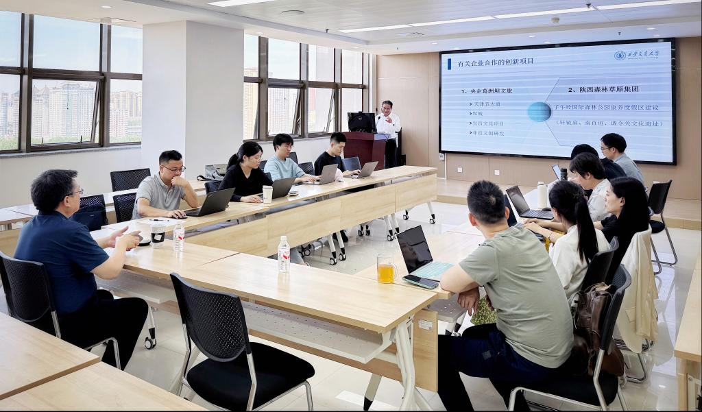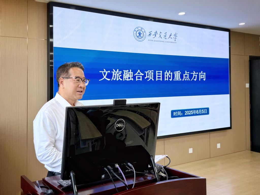 服务国家战略的重要方向。他表示,陈共德曾任国家广播电影电视总局发展研究中心产业所所长、西安曲江文化产业投资集团公司党委书记等职,具备丰富的文旅融合与产教融合工作经验。学院师生要主动抓住文旅融合发展机遇,积极支持陈共德老师的文旅融合项目,组建成果转化型团队,打造具有影响力的产教融合平台,实现社会效益与经济效益的共赢。