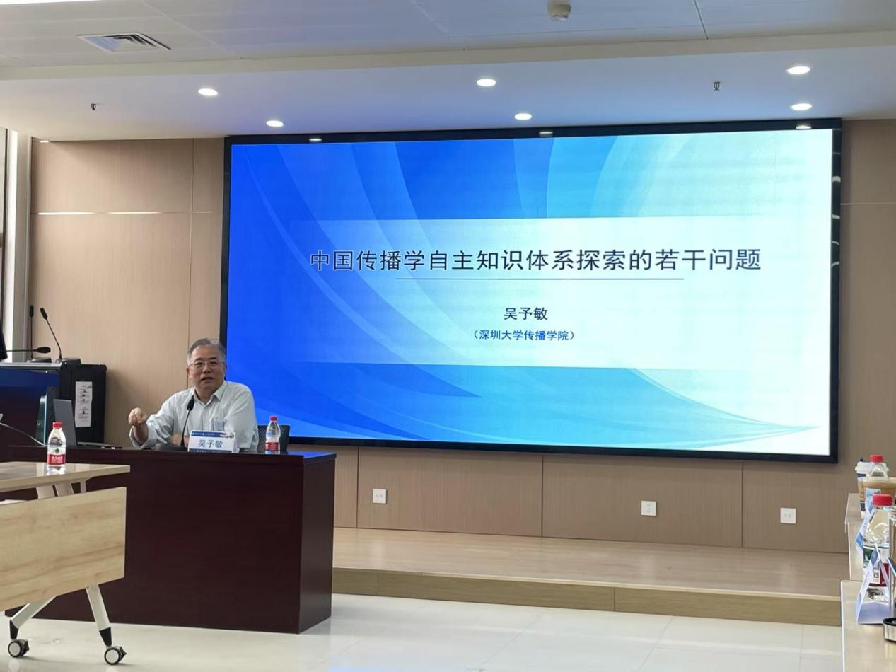 吴予敏教授围绕“中国传播学自主知识体系探索的若干问题”进行分享,结合自身学术历程及西方传播学进入中国的时代语境,从“回顾:从传播学本土化到自主知识体系探索”“问题意识、对策研究和基础研究”“研究视角与变量关系”和“以中国为方法”四个部分深入分析了中国传播学自主知识体系建构的若干问题及脉络主线,指出西方传播学引入中国及其在中国实践中的应用存在着科学主义和功能主义等“学科缺陷”,传统西方中心论的研究视野无法全面理解中国。从学术的角度来讲,建立以中国经验为基础、以中国方法为导向的自主知识体系既是国家战略的需要,也是新闻传播学科创新发展的必然之举。在直面本土实践的现实历程和学术观照中,我们能够发现真问题,做出真学问。他重点阐述了在传播学领域里如何“以中国为方法”的问题,指出近年来传播学研究日益重视中国经验的发掘,但是为了建设自主知识体系,还需要进行理论创新。在丰富个案经验和创新理论体系之间,先要在方法论上突破。以中国为方法,是在中国经验基础上的提升、概括和总结,是介于“经验研究”和“理论体系”之间的中介。只有在问题意识和研究规范之间、对策研究和基础研究之间建立起桥接联系,自主知识体系建设才有可能。吴予敏教授强调所有的创新研究只有在跨学科合作中才能实现,跨学科研究是当代人文社会科学的基本特点。相比传统学科“隧道”推进式的研究模式,传播学始终都应遵循“广场”开放式的学术逻辑,多元交叉特色本就构成着新闻传播学科强大生命力的始基。传播学方法论的创新,也需要充分借鉴、移植、转化其他学科的成果。