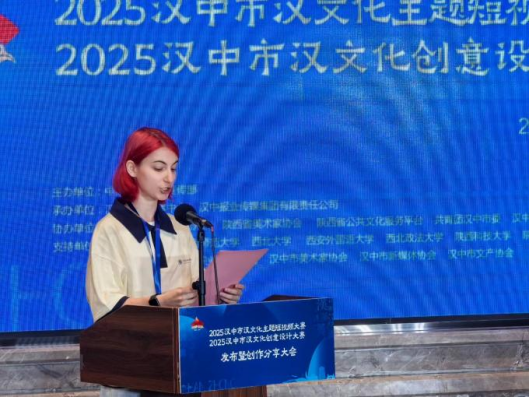 活动现场,网络与新媒体本科专业的2023级俄罗斯留学生阿水作为创作者代表分享了自己的体验与感悟。她表示,汉文化不仅是历史,更是活着的艺术。每次练习书法时,她都能感受到那种专注和平静,汉服的优雅更是让她深深着迷。她提出,汉文化作为中华文明的重要组成部分,不仅属于中国,也属于全人类,并号召大家一起保护和分享汉文化,让汉文化的“新韵”传遍全球。