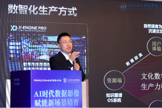 金东数字创意股份有限公司董事长周安斌分享了文化科技融合的产业实践成果。他介绍,公司通过开发商文化大模型、数字人讲解员等产品,推动文博场景数字化转型;在城市更新领域,通过AI光影秀、虚实结合街区体验等形式,激活历史文化街区活力。他提出,数据影像的未来发展应构建“文化大数据-智能生产-场景体验”的闭环体系,通过非线性、交互式内容创作,满足消费分级需求。