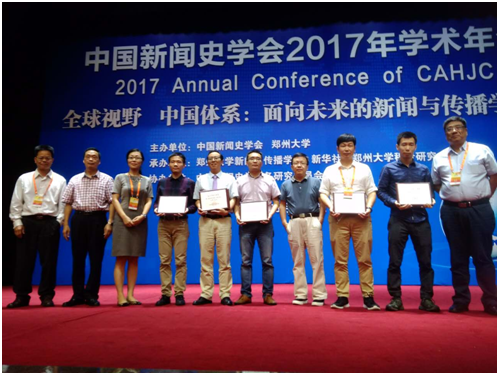 2017年8月18-19日,由中国新闻史学会、郑州大学主办,郑州大学新闻与传播学院、新华社·郑州大学穆青研究中心承办,中国新闻史学会十六个二级分会协办的“2017年中国新闻史学会学术年会”在河南省郑州市黄河迎宾馆举行。8月19日下午,中国新闻史学会2017年学术年会先后举行了第三届新闻与传播学学会奖颁奖典礼,我校新闻学院吴锋教授获第三届优秀学术奖二等奖,系2017年度陕西省唯一获得该奖项的成果。