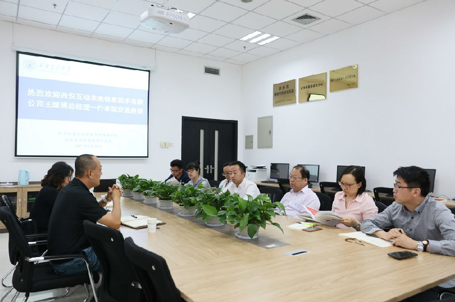 5月15日下午,西安互动未来信息技术有限公司王维博总经理一行访问我院,与我院领导商讨未来合作计划。李明德院长,吴锋教授,张宏邦老师,张立老师,蒙胜军老师,申楠老师及朱多刚老师参加座谈会。