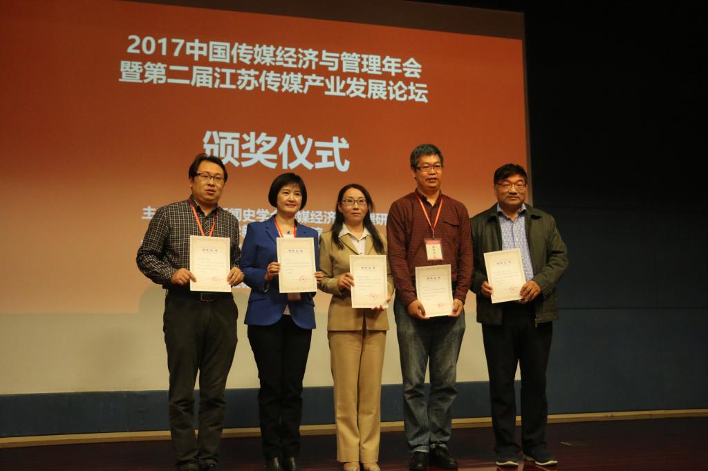 10月28日,2017中国传媒经济与管理年会暨第二届江苏传媒产业发展论坛在南京大学新闻传播学院举办。我院陈积银教授论文《移动互联时代3D视听新媒体的发展现状与趋势研究》荣获“2017中国传媒经济与管理研究年度最佳成果奖”。与此同时,我院陈积银教授还在会议上做了《中国网络视频产业的现状、困境与思考》的报告,并担任分论坛的评议人。此次论坛由中国新闻史学会传媒经济与管理研究委员会和南京大学新闻传播学院主办,新华报业传媒集团联办,洋河股份和新华网江苏频道协办,来自新闻出版管理部门、高校及传媒业界的专家学者围绕传媒融合及产业发展进行了深入研讨。