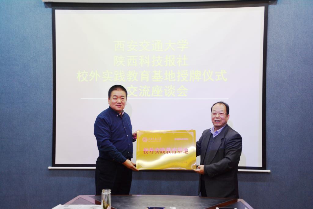 院长李明德教授为陕西科技报社授予“校外实践教育基地”。李明德在致辞中表示,此次授牌,西安交大91传媒