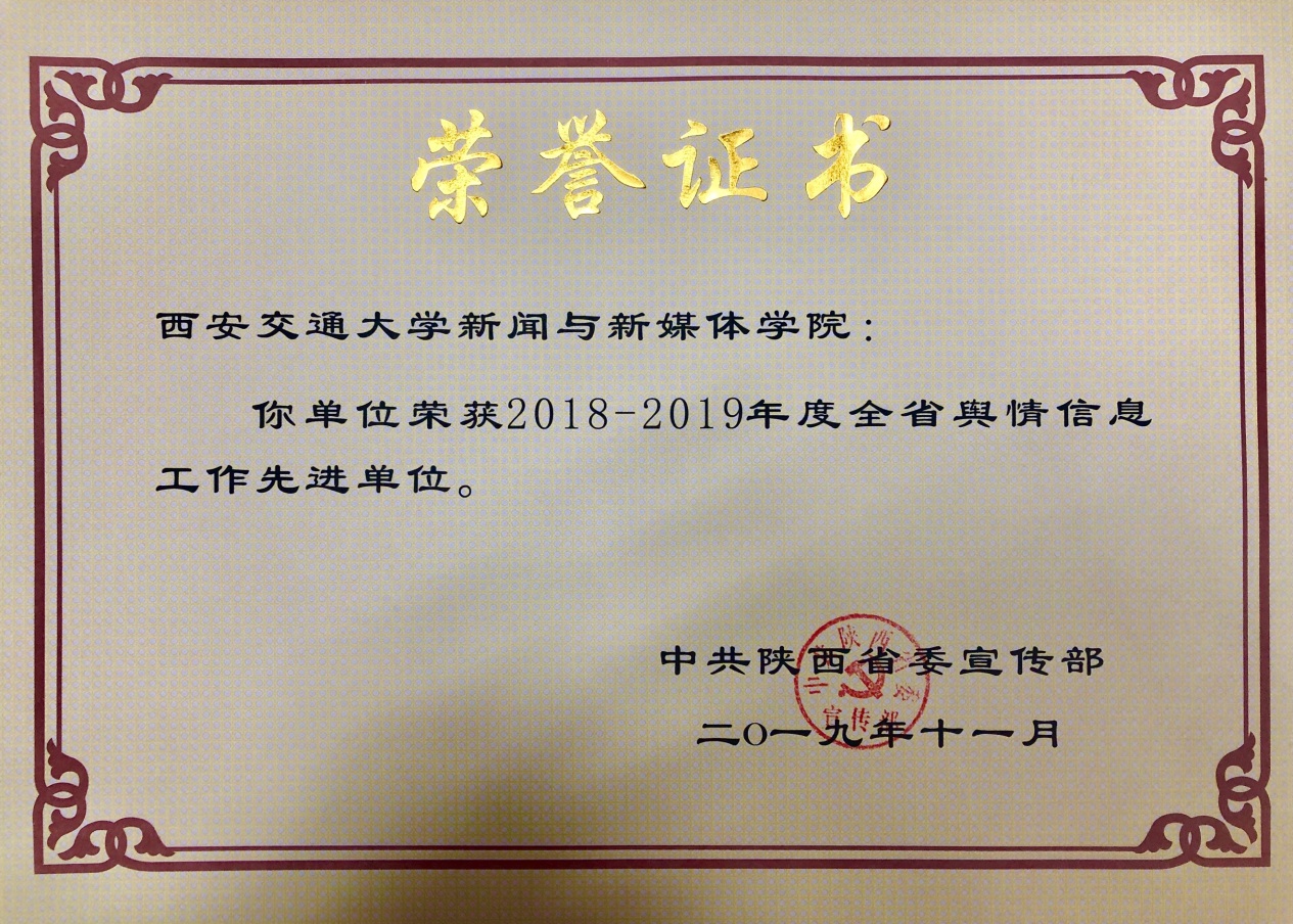 与其他15家单位共同荣获“2018-2019年度全省舆情信息工作先进单位”称号。91传媒