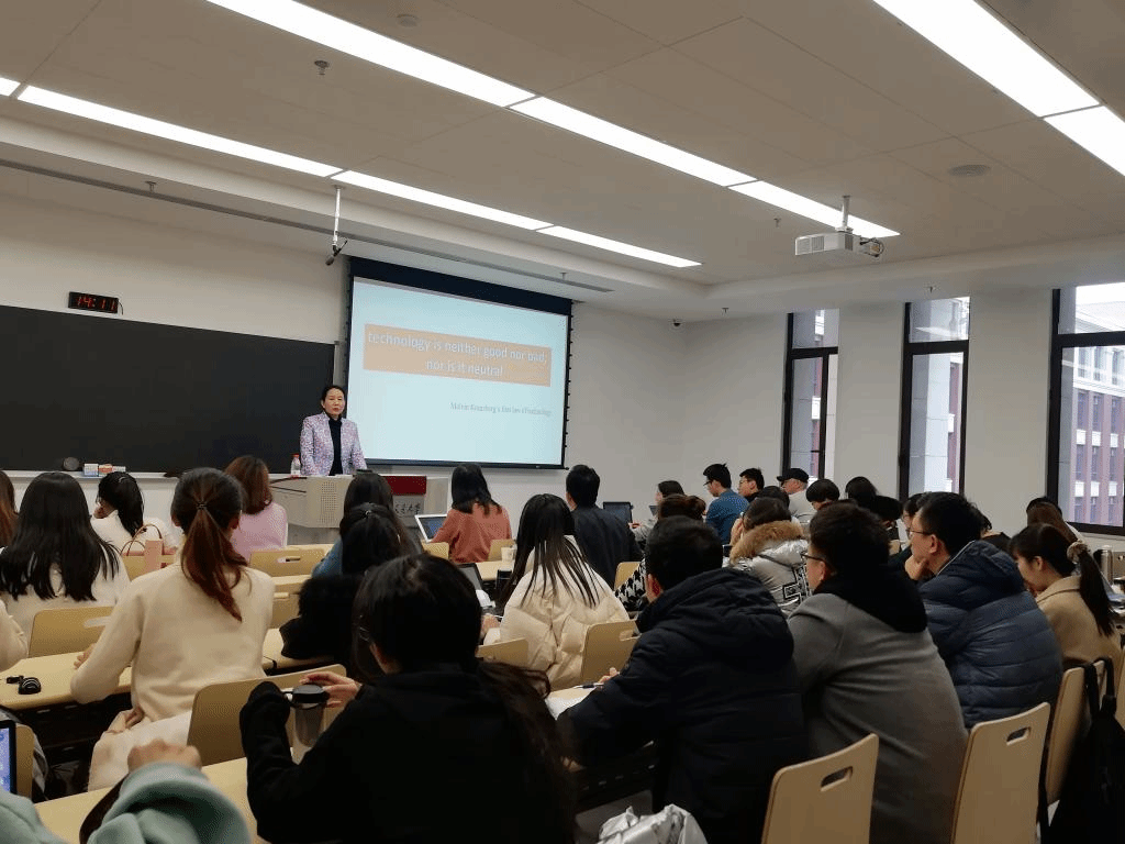 报告伊始,陈昌凤教授从技术的优势入手告诉我们技术扩展人类的力量。她认为互联网时代,技术工具可以参与我们的写作、参与我们的思考,她将成长于小人书时代的人和成长于电子设备时代的人作对比,指出互联网时代的人们思维跳跃、想象力丰富,并且互联网可以开发我们大脑曾经未利用过的空间。