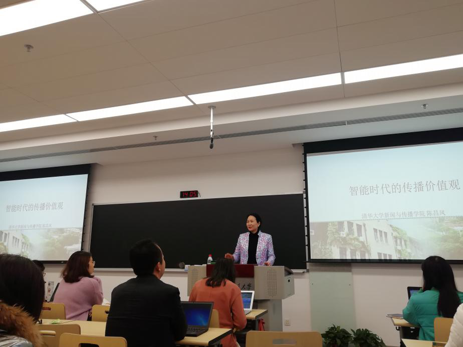 “智能时代的传播价值观”学术报告会于创新港顺利举行,报告会由特邀嘉宾清华大学新闻与传播学院执行院长陈昌凤教授主讲,张宏邦副院长主持,教师和研究生参加。