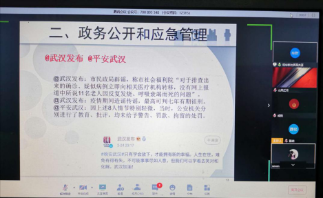 124周年校庆的献礼,“新新论坛”承我校建设思想交大、智力交大的号召与学术需要,通理论之方圆、造交流之平台。旨在弘扬新学术、传播新思想、推介新人物。论经典文献之学理、畅叙传播至新世界、散播智慧之光芒。4月9日晚7点,第五十一讲“疫情、舆论和社会治理”在腾讯会议线上拉开帷幕。论坛由学院副院长张宏邦主持,此次线上“新新论坛”吸引了人民网、陕西日报社、陕西广播电视台等相关部门与兄弟院校师生近300人热情参与。