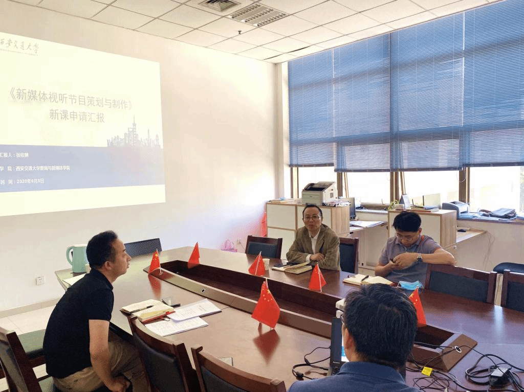 6月3日下午,学院组织开展“2020-2021学年新教师新开课程评议”活动。学院实验技术岗教师张收鹏对即将承担的专业选修课《新媒体视听节目制作与编辑》的课程定位、教学目标、教学大纲等内容进行了汇报。该课程是一门为本科生开设的专业选修课,教学目标是学生通过该课程学习后能够独立完成视听新媒体节目生产制作。学院教学委员会组织学院领导张宏邦、新闻系主任蒙胜军、传播系主任吴锋对新开课程进行评议,并对新开课程的教学内容和讲授方式提出具体意见与要求。经学院教学委员会讨论,认为该实验教学课程目标定位清晰,内容设置合理,理论讲授和实践操作相结合,符合我院新闻与新媒体人才培养的课程要求。