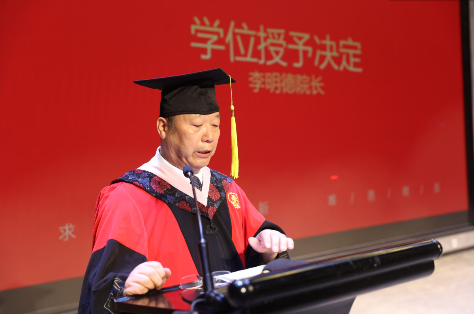 典礼最后,李明德院长、韩博副书记、张宏邦、孙鹤立副院长为全体毕业生一一拨穗,授予学位,并与毕业生合影留念。