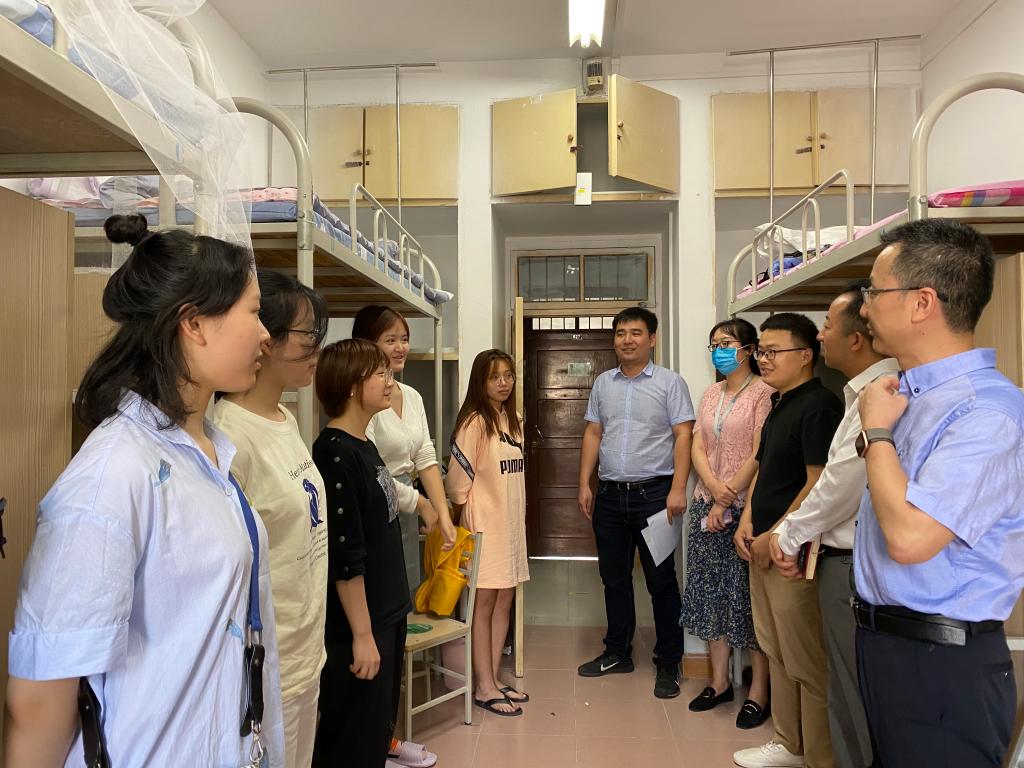 韩博副书记、张宏邦副院长,新生班主任李巨星老师,教务员马樱支老师走访新生宿舍,了解新生情况,为新生送去亲切的关怀。
