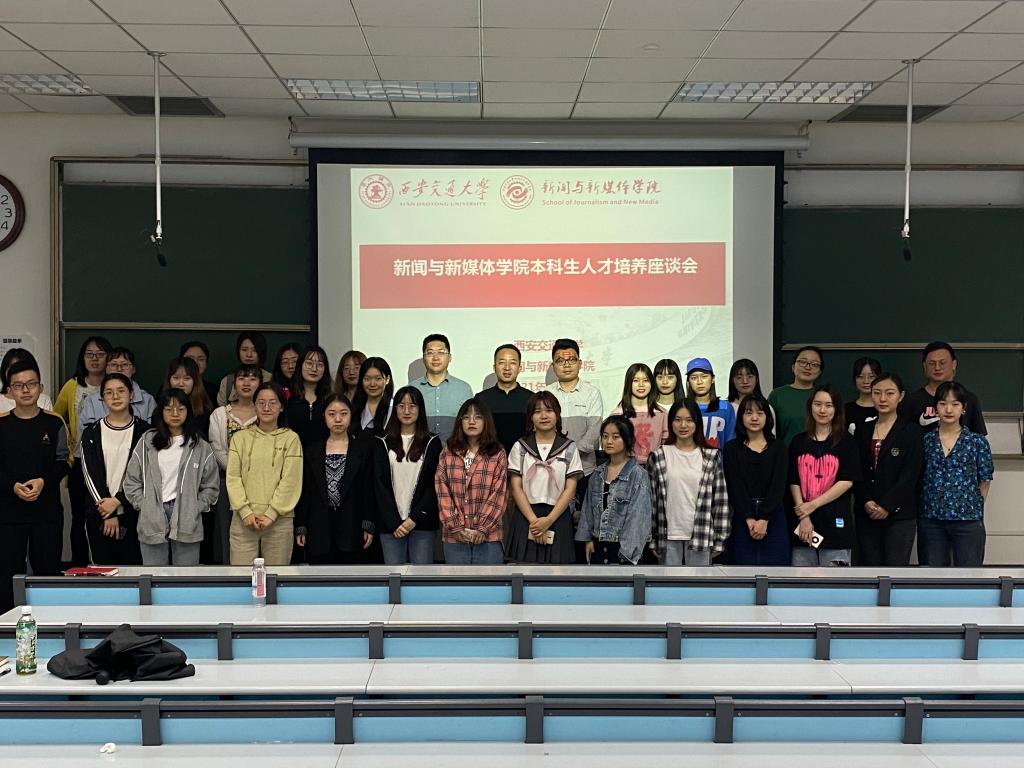 召开本科生人才培养座谈会,教学副院长兼新媒体91班班主任张宏邦老师,新媒体71班班主任蒙胜军老师,新媒体81班班主任朱多刚老师,学院教务员马樱支老师参加座谈,新媒体71班、81班、91班部分学生参加会议。