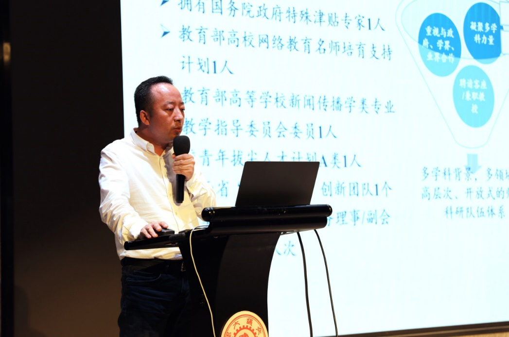 副院长孙鹤立从研究成果、荣誉成绩和科研平台等方面介绍了学院科研情况。她谈到,近年来,学院立足新问题、新挑战,持续采取积极措施,不断深挖“工字牌”内涵,初步探索出一条“坚守文工交叉,实施项目牵引,打造联合培养,发展计算传播”的特色化发展之路。