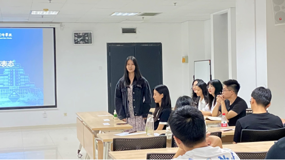 会议第二项,各班班委起立发言做简短的自我介绍,为接下来学生工作的顺利开展打下基础。