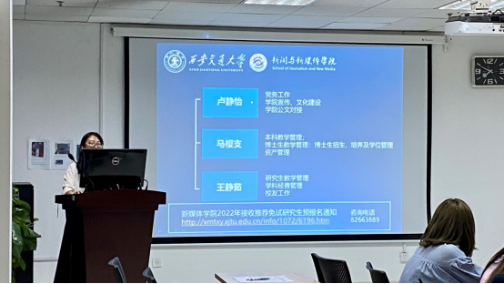 第三项,辅导员孙艳婷带领新生详尽地熟悉了学院的培养计划、请假制度、报道讲座、实习制度以及常用网站等,帮助同学们尽快熟悉交大的学习生活环境。