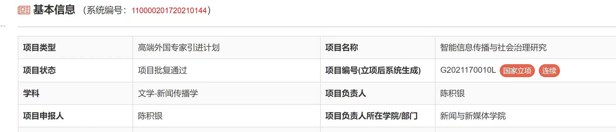 2021年度科技部国家外国专家项目评审结果日前公布,我院陈积银教授团队的申报的“智能信息传播与社会治理研究”获批“高端外国专家引进计划”,这是我院首次获批该项目。