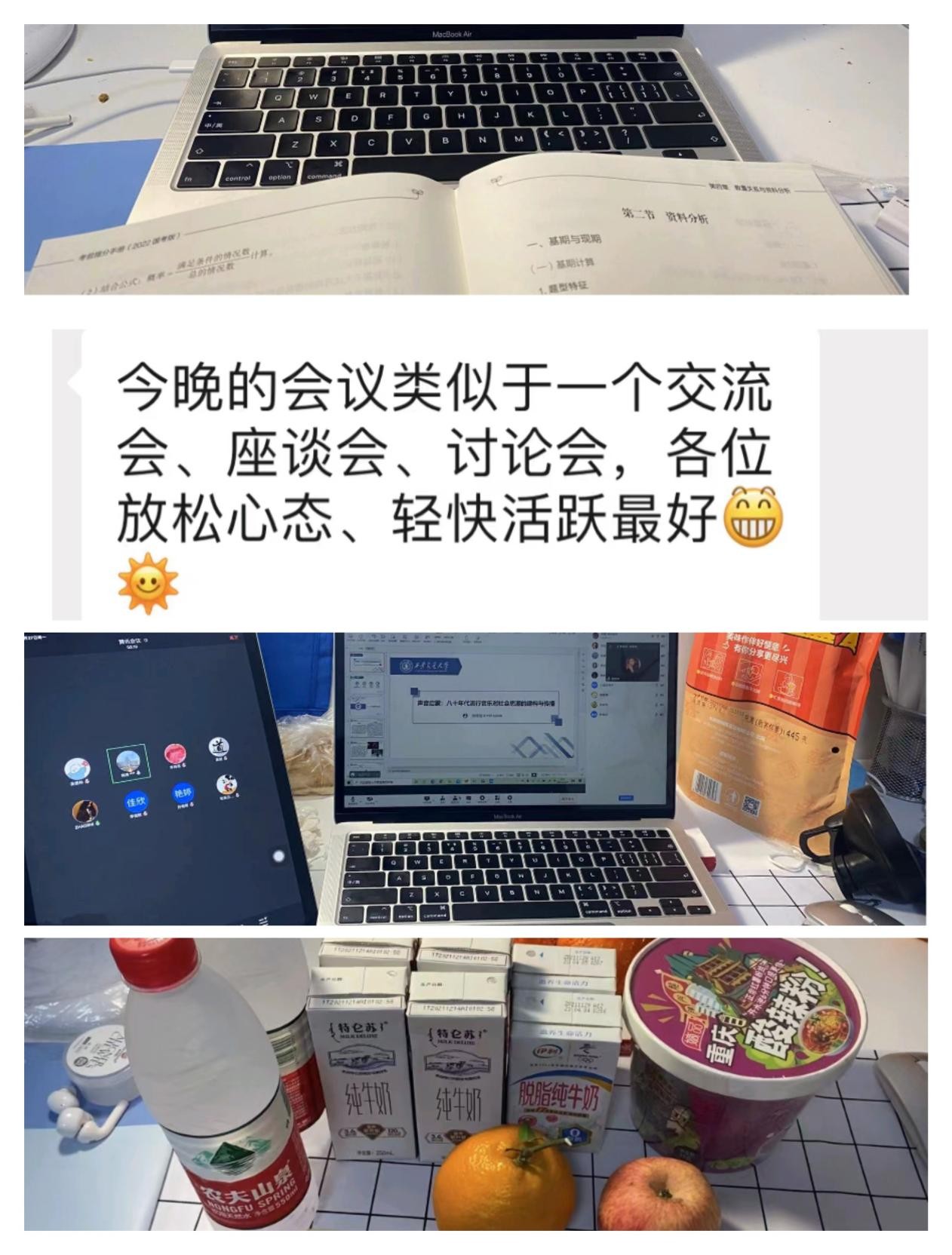 会学习亦会生活,在有限的空间和条件下,同学们不改其乐。学院座谈会上,学生代表结合目前的学习生活积极发言,就疫情期间校园防控管理工作充分表达意见和建议。“放松心态、轻快活跃”的氛围下,大家畅所欲言,消解了隔离带来的时空距离。