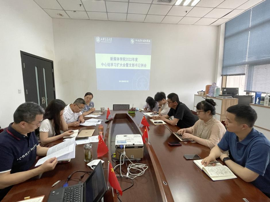 中心组学习扩大会暨党支部书记工作例会在兴庆校区主E40502会议室组织召开,学习宣传贯彻中共91传媒