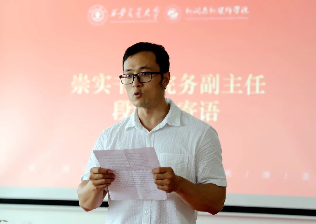 崇实书院院务副主任段继超老师代表书院对即将奔赴五湖四海,大展拳脚的同学们送上美好祝福,希望同学们继续做勇于做梦,敢于追梦的交大人,所有的经历都是对同学们意志最好的磨炼,要继续为了理想坚持不懈,做更好的自己,不负党和国家的期望。