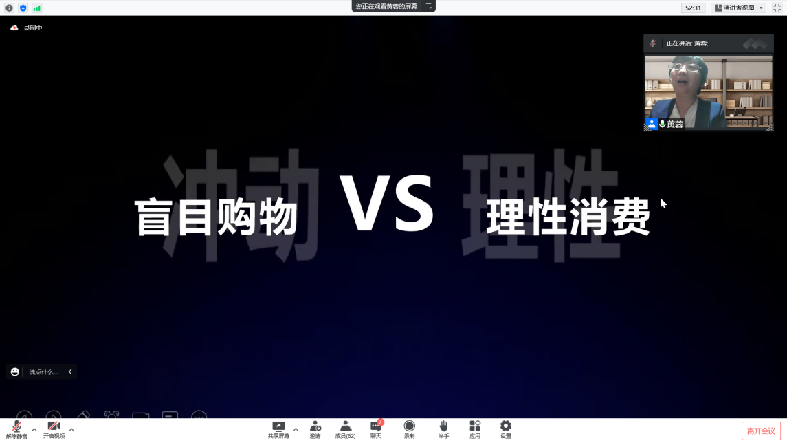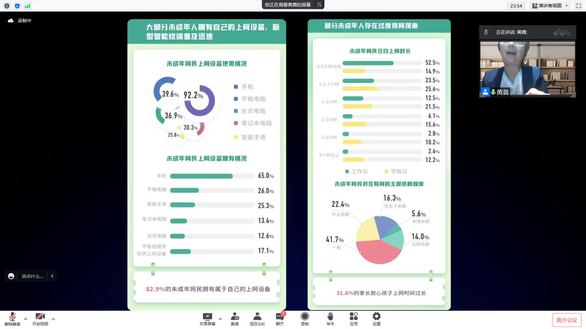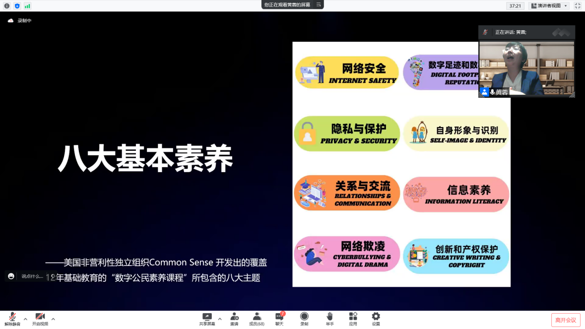 的黄蓉老师,为大家带来公益课程《未来数字公民养成计划:数字时代儿童青少年新媒体的正确使用》,主要内容是教会作为数字原住民的儿童与青少年群体如何用好互联网,包括老师、负责人、志愿者、学生等人在内的62位师生参加了本次课程。