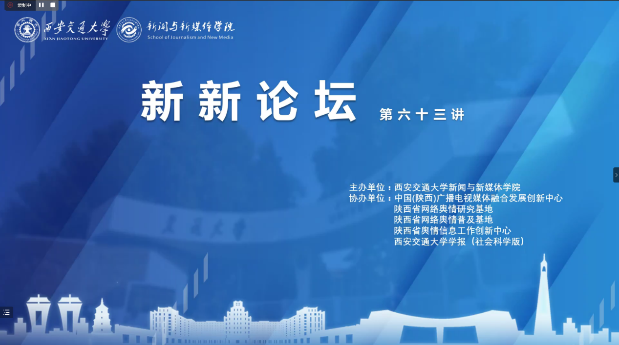 副院长张宏邦主持,学院院长马忠、副院长孙鹤立及多名青年教师积极参会,并吸引到来自北京大学、南开大学、山东大学、兰州大学、中国传媒大学、首都师范大学等校内外500余位师生热情参与。