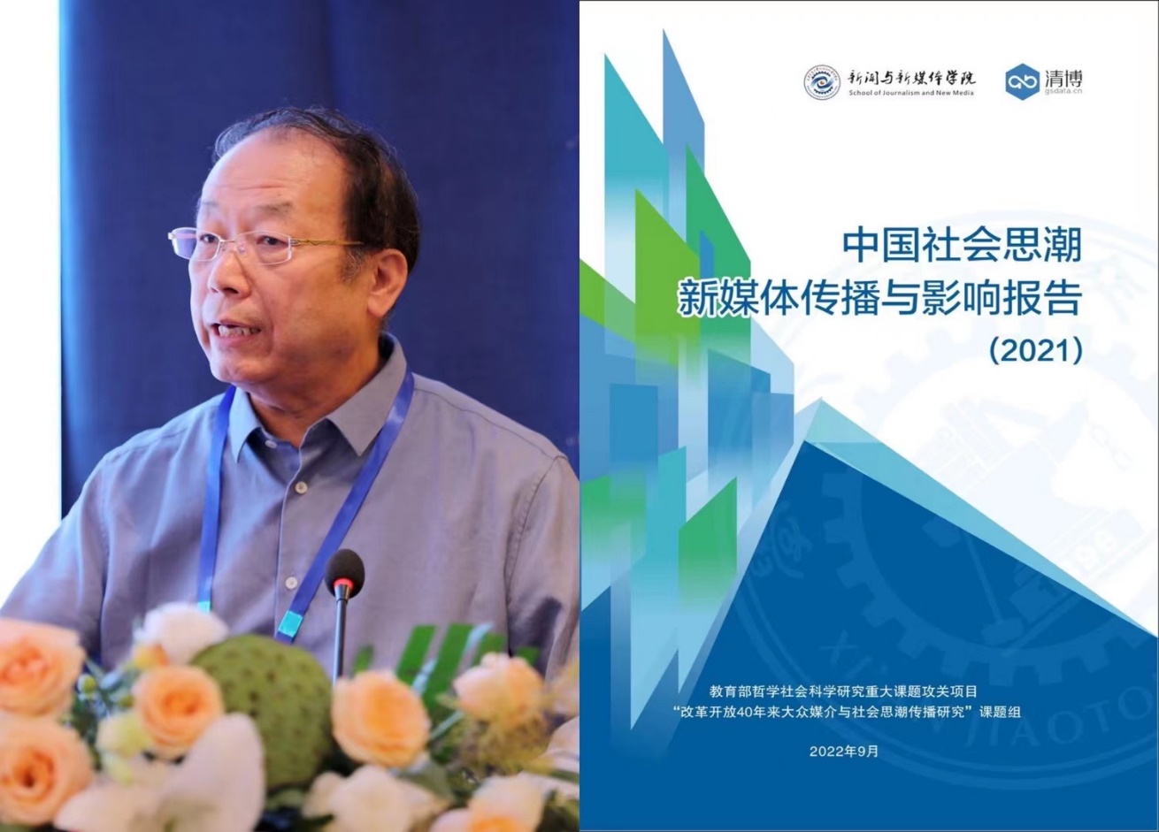 教授、新闻与传播研究所所长、教育部哲学社会科学研究重大课题攻关项目《改革开放四十年来大众媒介与社会思潮传播研究》首席专家李明德教授发布了《中国社会思潮新媒体传播与影响报告(2021)》。报告内容包括社会思潮传播力排行榜、社会思潮论争热点及趋势、传播特点及影响、典型事件及言论分析等,并对2022年社会思潮新媒体传播进行了展望。