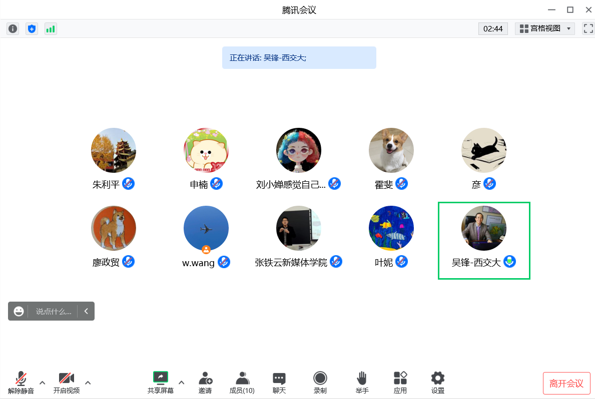 文化软实力与国际传播团队通过腾讯会议召开科研建设工作专题会,团队10位老师参加,吴锋教授主持会议。