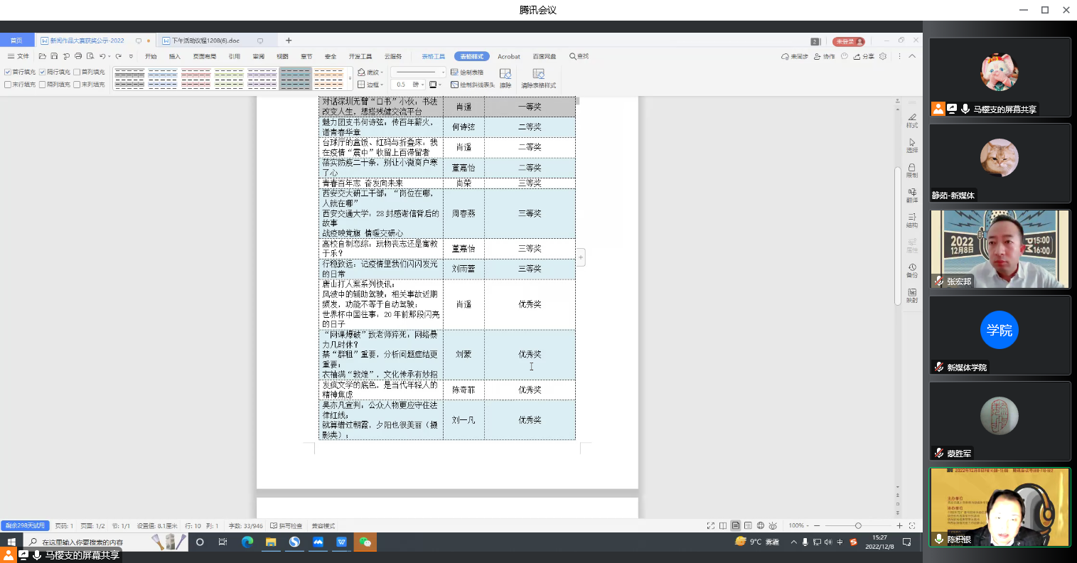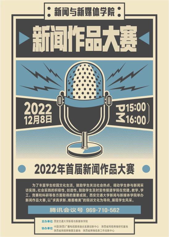 组织2022年新闻作品大赛,收到全校学生踊跃来稿。投稿作品经专家评审,评出一等奖2项,二等奖3项、三等奖6项及优秀奖若干。12月8日,新闻作品大赛评审活动线上举办,活动由91传媒