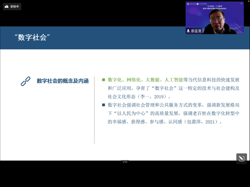 云南大学新闻传播学院院长廖圣清教授的分享主题是 “数字社会卓越新闻传播人才培养模式的创新”。他指出:“在数字社会建设战略的要求下,数字技术已经深度嵌入社会运行的基础逻辑”。在全媒体传播体系建设中,以人民为中心,以科学为基准,以实验室为核心,建立起一套围绕理论、技术、场景展开的综合培养体系,推动卓越数字新闻传播人才培育不可忽视。