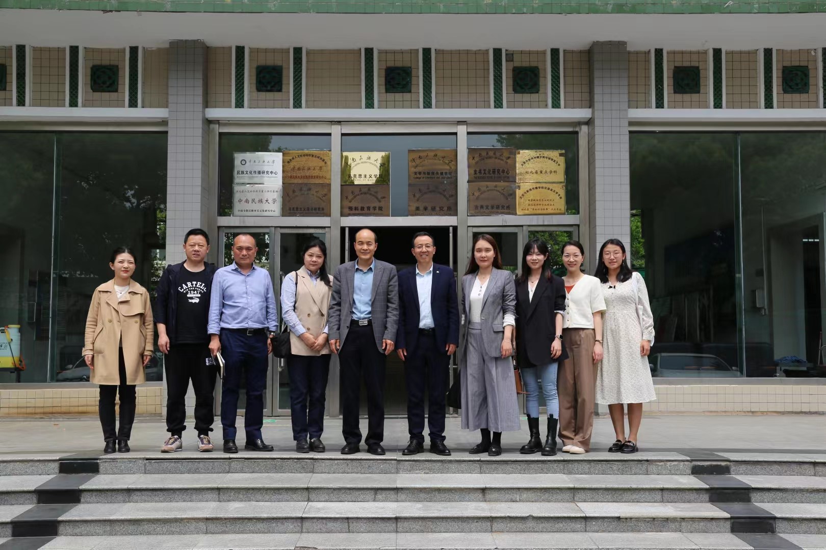 学术团队到中南民族大学文学与新闻传播学院调研学习,双方就学科发展、科学研究、人才培养等问题,及如何进一步加强院际合作开展座谈研讨。中南民族大学文学与新闻传播学院院长陶喜红教授,副院长陈峻俊教授,新闻系主任郝永华教授,实验室主任吴涛,学院办公室主任陈琳;91传媒