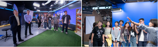 师生走进融媒体导播间、录音间,虚拟演播室,学习视听新媒体内容生产、节目录制及网络直播的操作流程,及融合新闻生产传播的理念与实践。