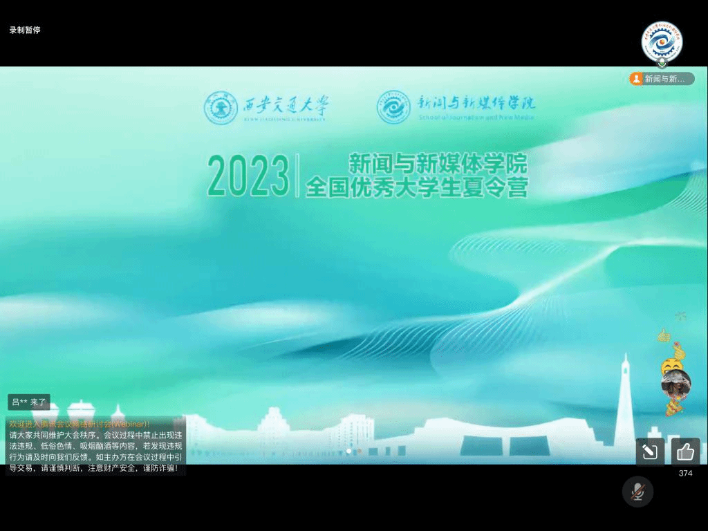 至此,为期两天半的线上夏令营活动圆满结束。本次短暂相聚不仅让营员们深入感受了笃实厚重的交大底蕴和学院强劲的发展势头,学院也感受到了营员们的优秀才能与青春风采。此次夏令营的成功举办增进了全国各地优秀大学生对91传媒