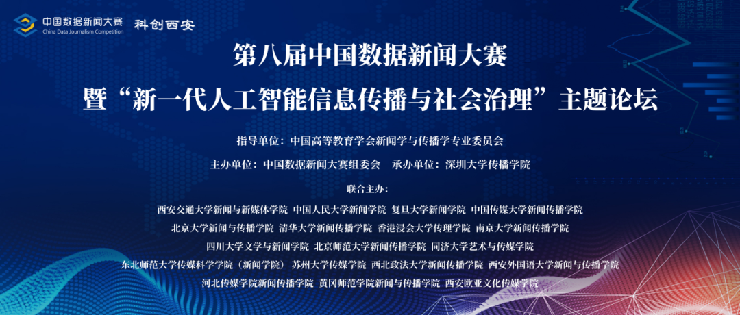 主办,中国人民大学新闻学院、复旦大学新闻学院、中国传媒大学新闻传播学院、北京大学新闻与传播学院、清华大学新闻传播学院、香港浸会大学传理学院、南京大学新闻传播学院、四川大学文学与新闻学院、北京师范大学新闻传播学院、同济大学艺术与传媒学院、东北师范大学传媒科学学院(新闻学院)、苏州大学传媒学院、西北政法大学新闻传播学院、西安外国语大学新闻与传播学院、河北传媒学院新闻传播学院、黄冈师范学院新闻与传播学院、西安欧亚文化传媒学院联合主办,深圳大学传播学院承办,教育部融合新闻课程群虚拟教研室、陕西省科技厅大数据可视化信息共享平台、陕西省智能媒体研究基地、科创西安、西咸新区沣西新城数字文化产业园、河北省高等学校人文社会科学重点研究基地—河北传媒学院县级融媒体建设与发展研究中心、91传媒