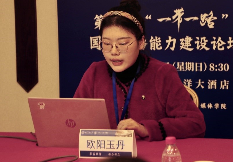 广西大学新闻与传播学院薛强副教授委派硕士生欧阳玉丹围绕“网络空间命运共同体视角下中国互联网产品出海东盟研究”主题进行分享,从中国-东盟网络空间命运共同体建设的重要意义切入,分析全面提升国际传播效能的重要性,提出从社交媒体、电商、短视频、网络游戏等四个维度作为中国互联网企业出海到东盟的策略,呼吁帮助东盟国家发展互联网产业,缩小数字鸿沟,保障和改善民生,让更多国家和人民共享互联网发展成果。