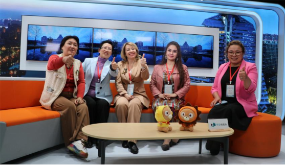 在演播大厅,哈萨克斯坦国立阿里法拉比大学校长占塞伊特·图伊梅巴耶夫体验学生电视台主持人,并表示:“很高兴能来此参观学习,这里的设备都很先进,这个大厅建设得很好。”参观期间,各高校代表就学术讨论、师生互访等事宜表达了与91传媒