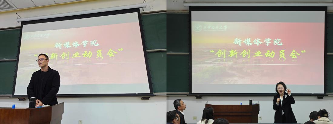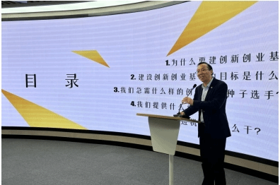 随后,吴锋副书记详细介绍推进学院创新创业基地建设工作。强调创新创业教育是推进"新质生产力"的重要抓手,学院希望能够打造全国一流创新创业教育标杆,培养一批适应新媒体行业发展需要的卓越人才。创新创业基地尤其需要内容创作类、主播类、外语类、运营类的优秀人才助推新业态的发展,学院将为同学们提供各种资源,鼓励同学们积极报名,助力创新创业。