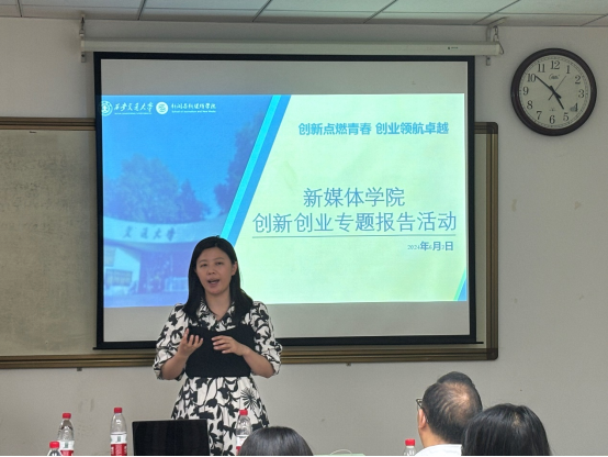 首先,于旭东详细分析了当前时代背景下各行业的发展趋势和变化,特别是新媒体行业如何在新经济、共享经济中抓住机遇,实现创新突破。于旭东的分享从数字经济时代的创新创业机遇与挑战出发,为在场师生带来了一场思维盛宴。他指出,随着新经济、共享经济的崛起,创新创业面临着前所未有的机遇。他提醒大家要注意商业模式的变化、产品的发展趋势以及创业过程中可能遇到的问题和挑战。他还特别提到了创新的七种类型,并结合具体案例进行了深入解析。这些创新类型不仅涵盖了开拓式创新、升级式创新等传统模式,还包括了差异化创新、组合式创新等新兴模式,为学子们提供了广阔的思路和深刻的启示。