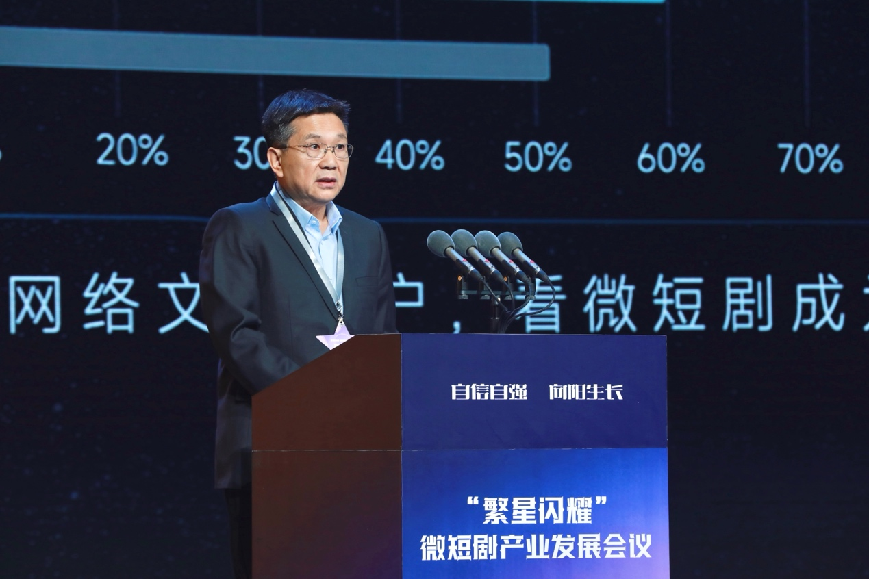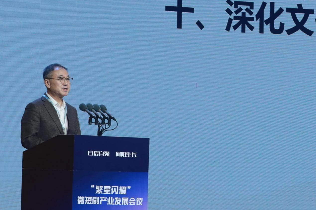 田进指出,本次微短剧产业发展会议,以“自信自强、向阳生长”为主题,并发布微短剧“繁星指数”、举办“繁星闪耀•微短剧之夜”等活动,就是要充分发挥行业健康发展“风向标”的重要作用,号召和激励微短剧行业各方从业者,一要提高政治站位,胸怀“国之大者”,坚持正确政治方向、舆论导向、价值取向、审美趣向,做新时代的代言人和记录者。二要坚守人民立场,坚持为民情怀,更多地从人民大众视角出发,围绕广大群众火热生活实践选题材、找素材、写故事,创作出更多贴近实际、贴近生活、贴近群众的优秀作品。三要坚持质量第一,弘扬工匠精神,俯下身子,静下心来,精心策划题目,细心谋篇布局,用心表现细节,真心抒发情感。四要强化大局意识,坚持团结协作,健全创作规范,完善行业治理,维护行业秩序,优化行业生态。五要聚焦新质生产力,借助行业新技术、新场景、新模式,创作出更多思想精深、艺术精湛、制作精良的微短剧精品。