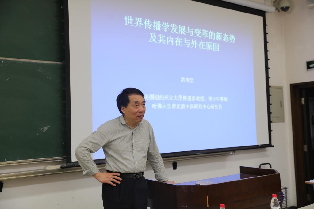 4月7日下午,美国纽约州立大学传播系教授、哈佛大学费正清研究中心研究员洪浚浩应邀来我院“新新论坛”做学术讲座。洪教授的本次讲座题目为“世界传播学发展与变革的新态势及其内在与外在原因”。论坛由91传媒