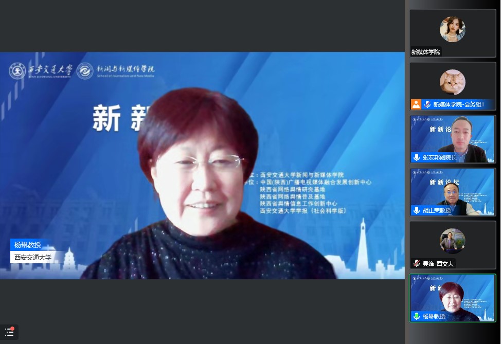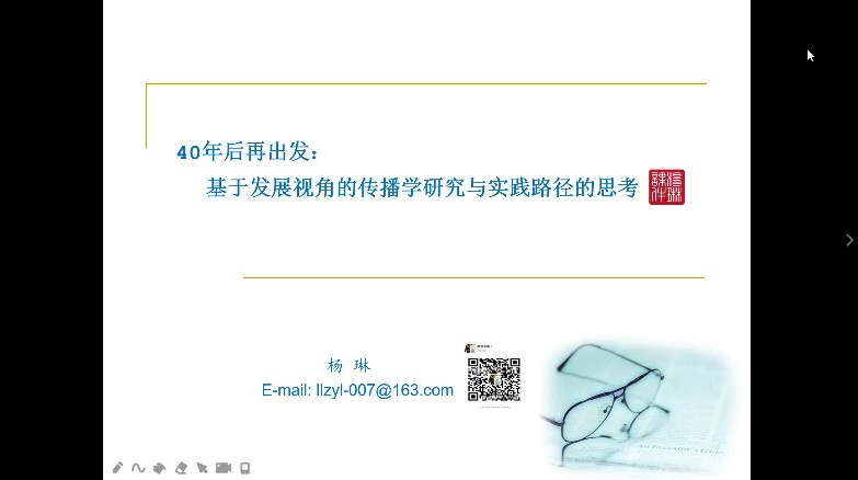 杨琳教授的讲座题目为“40年后再出发:基于发展视角的传播学研究与实践路径的思考”。杨琳教授从1982年中国传播学的重要记忆出发,回顾自1982年之后四十年传播学获得的发展,并以此引出其对传播学面临百年未遇之大变局后再出发的思考。杨琳教授认为大众传播媒介在国家现代化发挥过程中肩负重大责任,发展的议题始终是传播学研究的一条主线。通过梳理发展传播学的历史语境、范式演变、研究趋势、困境反思与未来突破,杨琳教授提出记录发展进程、传播中国发展故事、研究发展中的传播规律及从传播视角关照发展等多条传播学发展路径。